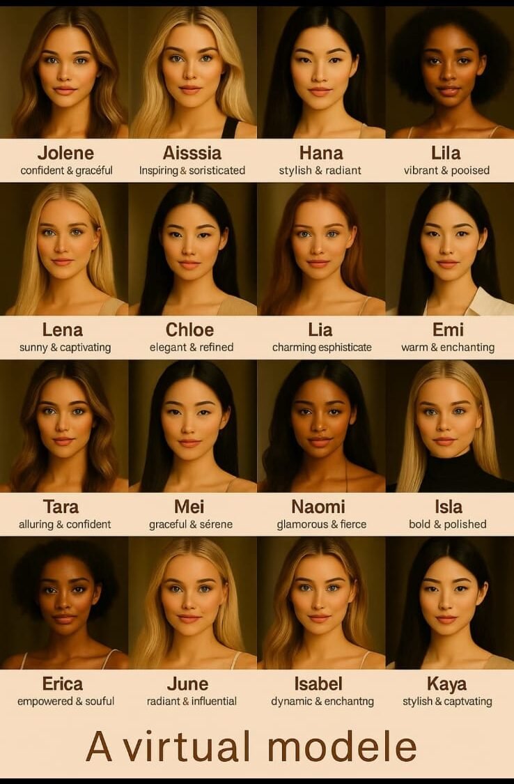 Each AI persona is designed with unique visual traits, emotional intelligence, and brand-specific identity — perfect for social media, advertising, and high-end digital campaigns.